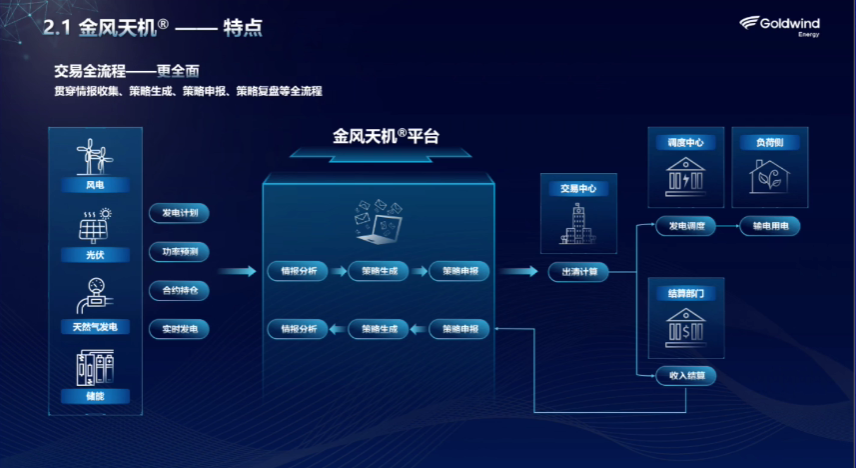 “金风科技设计的天机交易云平台将电力交易全链条都打通了,让整个系统形成一个闭环,然后对结算结果逐一进行分析,形成了一个全流程的过程管理。”