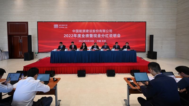 4月24日,中国能建召开2022年度业绩暨现金分红说明会,向社会各界介绍中国能建总体发展情况、2022年经营情况、当前面临的形势,以及 2023年主要经营举措。中国能建党委书记、董事长宋海良出席会议并讲话。公司非执行董事李树雷,党委常委、总会计师李丽娜出席说明会。董事会秘书秦天明 主持会议。