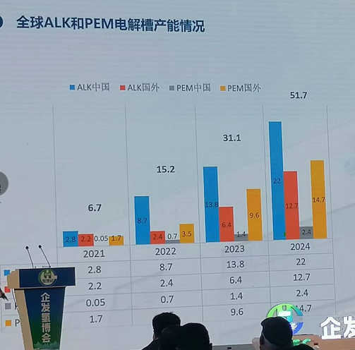 她说,国外形势来看,虽然碱性电解槽产能小于PEM产能,但是碱性电解槽产能扩张的速度高于PEM产能。