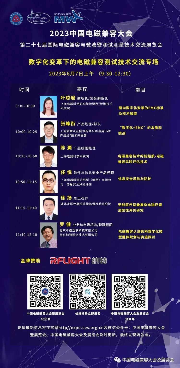 “第二十七届国际电磁兼容与微波暨测试测量技术交流展览会”将于2023年6月6-8日在北京开幕,同期举办“2023中国电磁兼容大会”。
