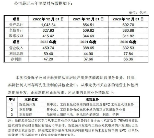 2023年6月4日晚间,正泰电器公 告,拟将控股子公司正泰安能分拆至上交所主板上市。正泰电器拟将其控股子公司正泰安能,分拆至上交所主板上市。本次分拆完成后,正泰电器股权结构不会发生 变化,且仍将维持对正泰安能的控制权。通过本次分拆,正泰安能作为上市公司下属唯一的户用光伏业务平台将实现独立上市。