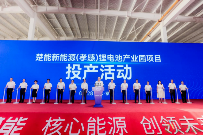 6月28日,楚能新能源孝感锂电池产业园项目一期投产活动在孝感市临空经济区隆重举行,孝感市委书记胡玖明代表孝感市委、市政府讲话,并宣布楚能新能源孝感锂电池产业园项目一期正式投产,楚能新能源股份有限公司董事长代德明致辞,孝感市委副书记、市长吴庆华主持活动。