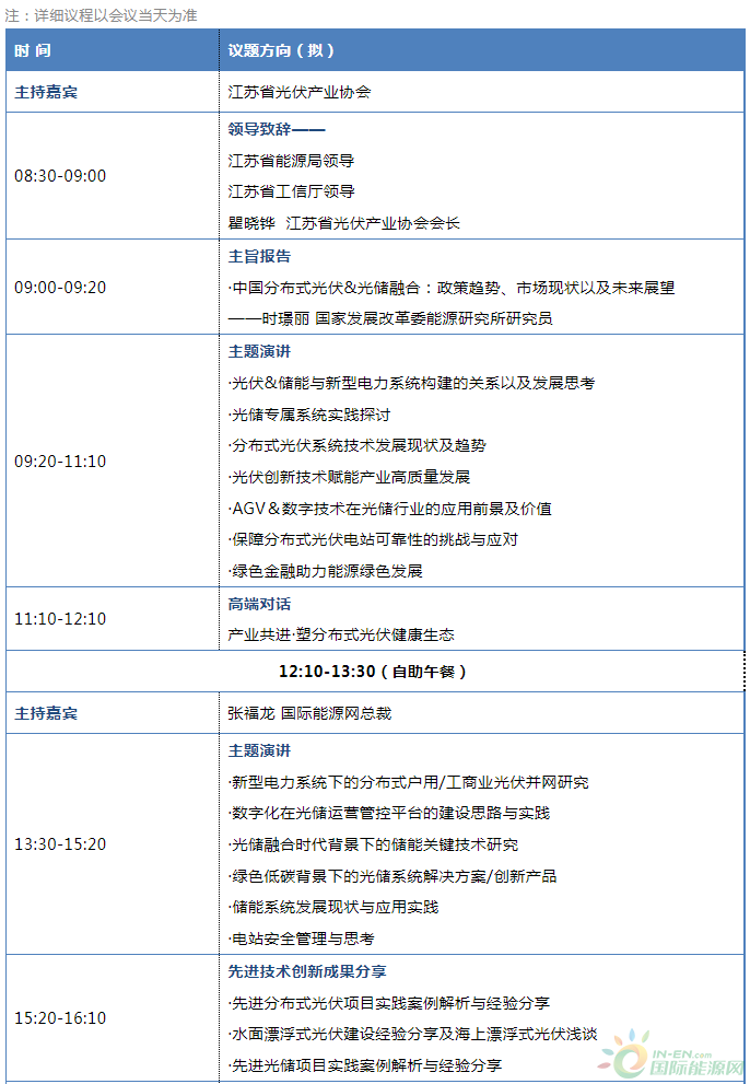 基于此,江苏省光伏产业协会会同【国际能源网】全媒体平台、国能能源研究院组织召开“第三届江苏光储产业发展论坛”,邀请相关主管部门、两网单位领导、资深专家学者、行业组织、金融机构、相关第三方机构等电力能源产业相关方参会,共同交流,共谋未来。