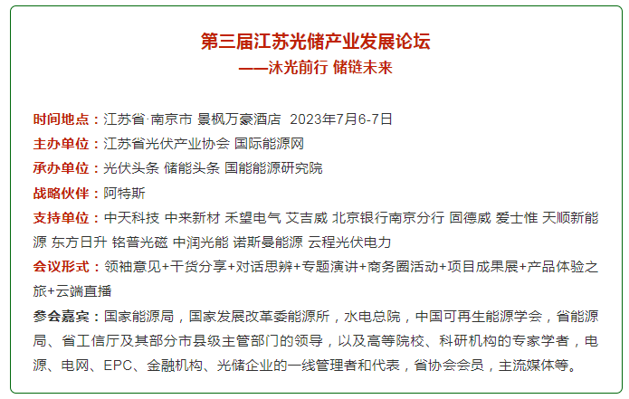 “第三届江苏光储产业发展论坛”将于7月6-7日在江苏南京举办。