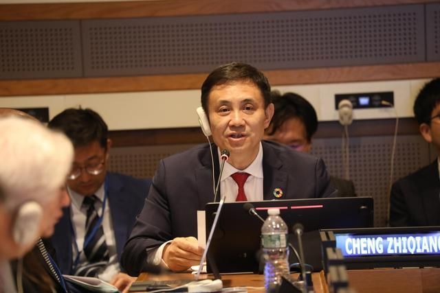 当地时间7月13日,联合国可持续发展高级别政治论坛能源主题边会在纽约联合国总部举行,边会由合作组织合作总监程志强主持。(合作组织供图)