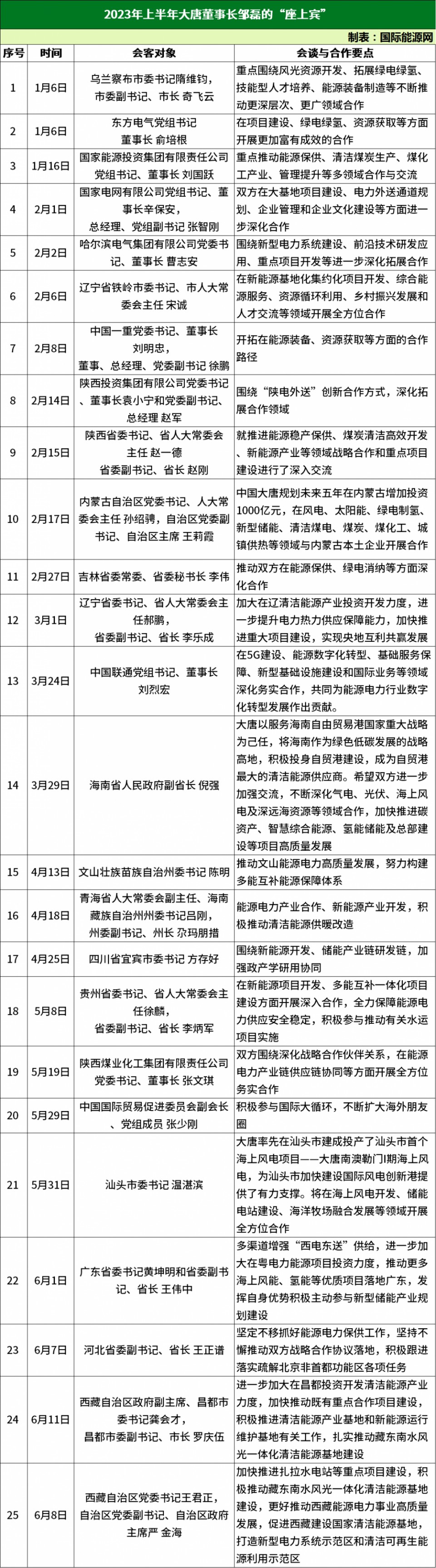在与地方领导的会面中,既有内蒙古、陕西、吉林等省级领导,也有辽宁铁岭、四川宜宾、云南文山等地方领导。在与省级领导的会面中,大唐公布了两个重磅消息。