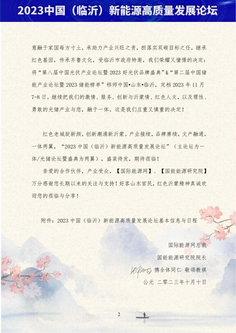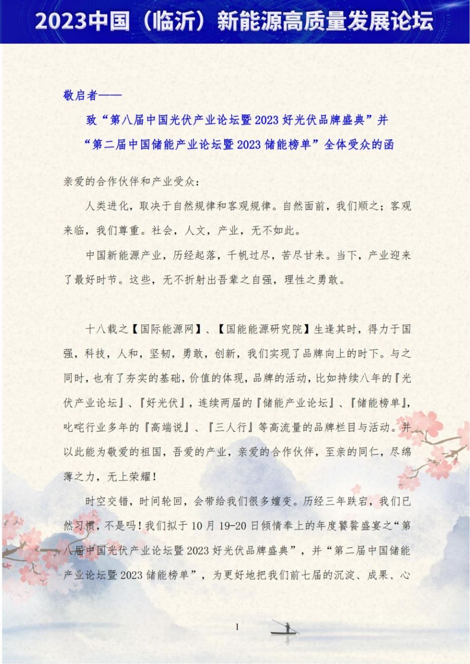 并“第二届中国储能产业论坛暨2023储能榜单”全体受众的函