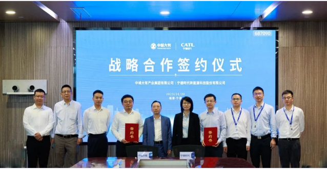 近日,中城大有与宁德时代签署战略合作协议。中城大有董事长吴发福、宁德时代储能事业部执行总裁肖丽娜出席并见证签约。中城大有副总经理兼新能源事业部总经理刘泽碧、宁德时代储能事业部项目管理总监姬宇代表双方签署协议。