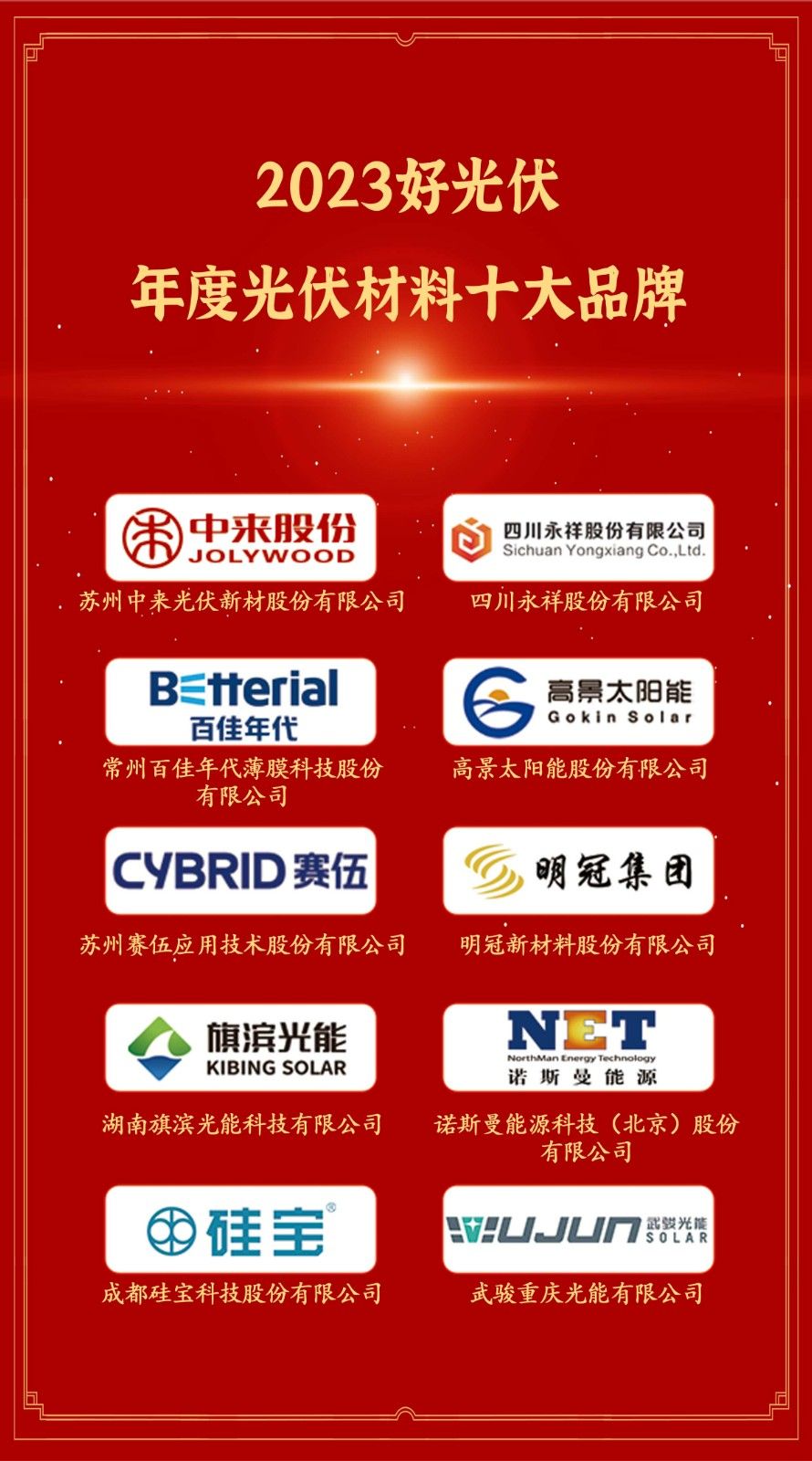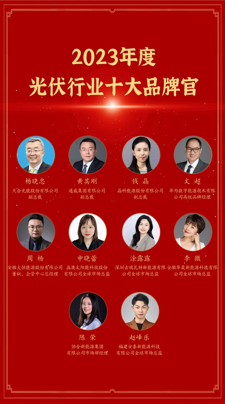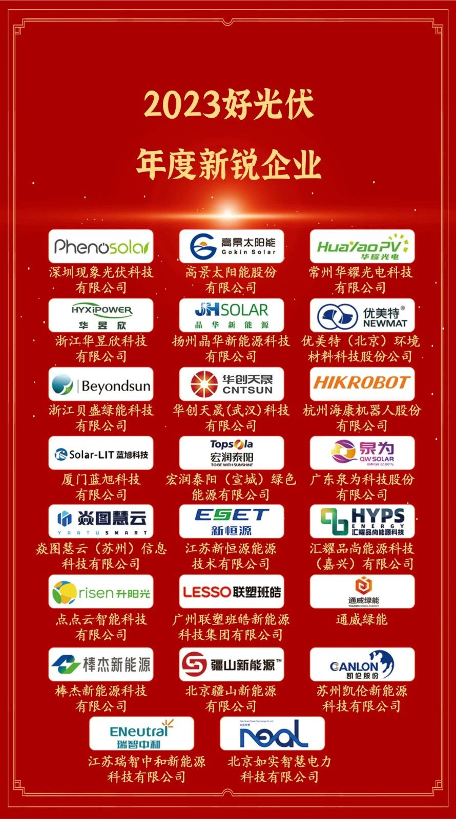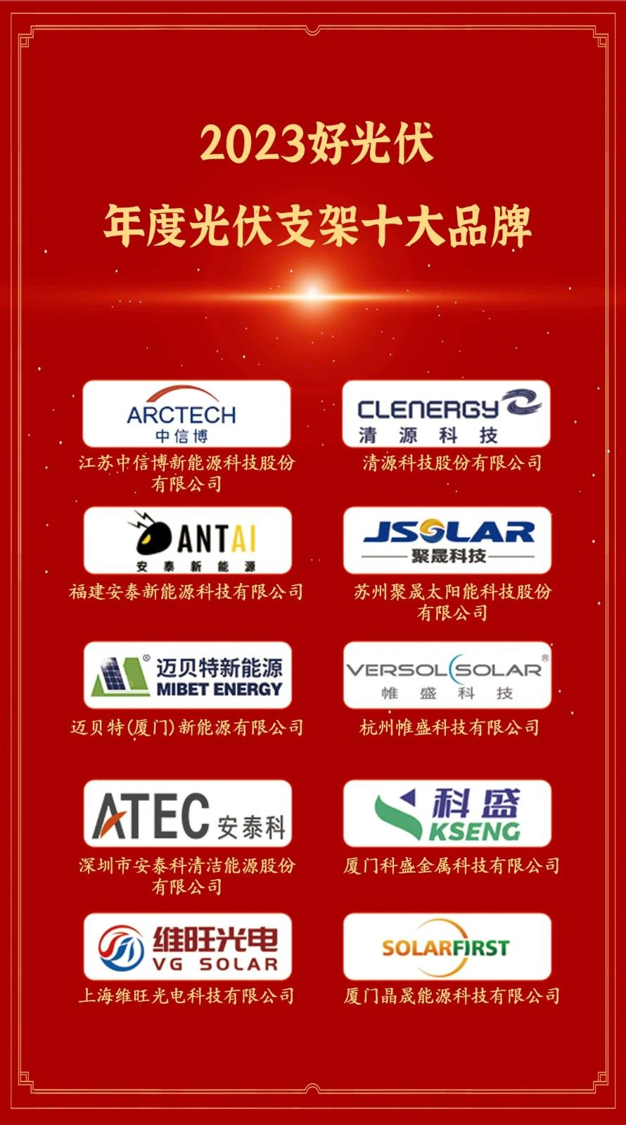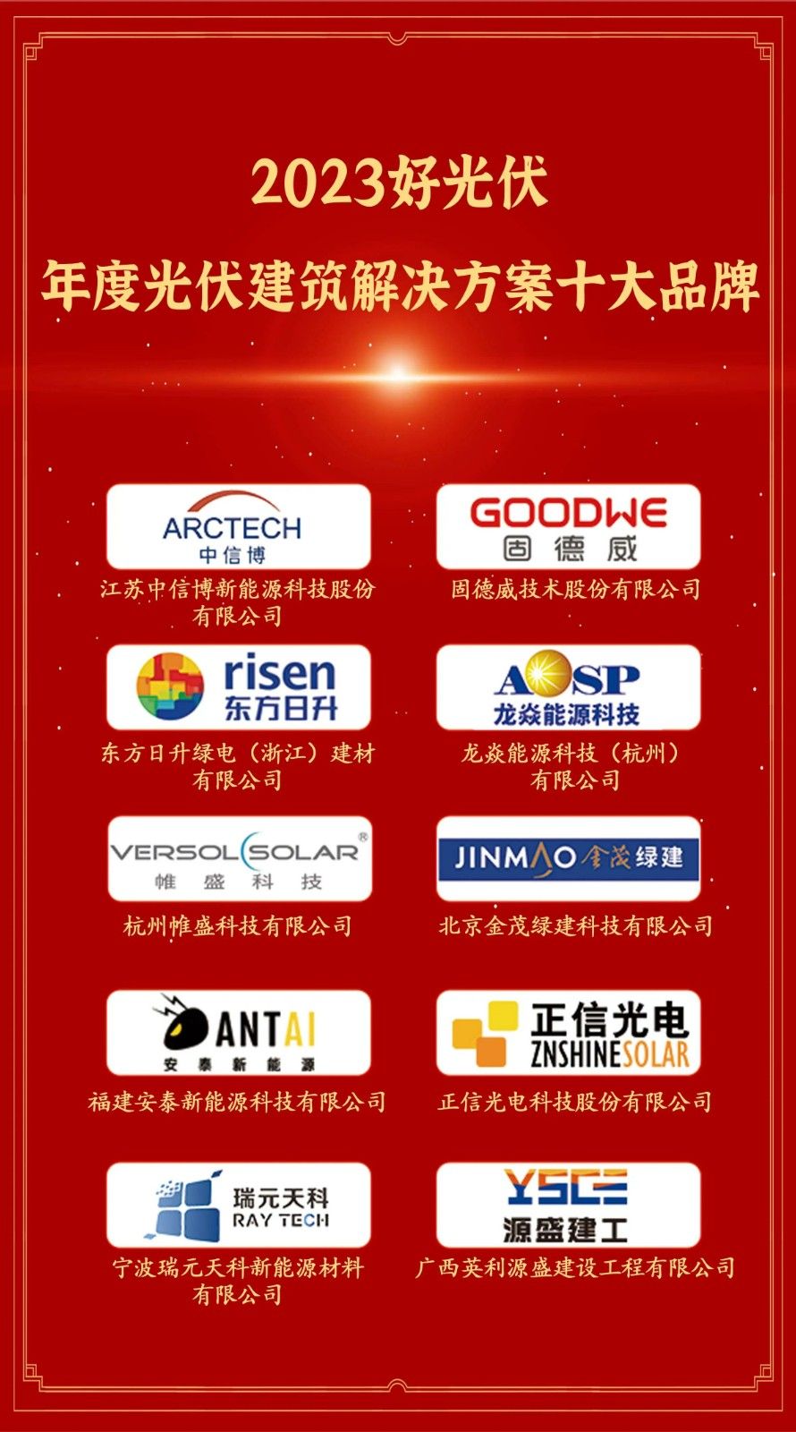 品牌活动 2023第八届好光伏品牌榜单发布! 2023-11-08 13:20:09 分享 11月7日,2023第八届好光伏品牌颁奖盛典在山东省临沂市隆重举行。该年度品牌活动由能源行业权威媒体国际能源网全媒体平台于2016年正式发起,旨在鼓励太阳能光伏企业的技术创新和品牌建设,表彰优秀企业为产业持续发展做出的重要贡献,现已成为光伏行业最具影响力的品牌奖榜。奖项设置包括年度行业绿色能源企业家、年度光伏领袖企业、年度光伏十大品牌官&优秀CSO、年度全球光伏优秀品牌、年度光伏电池/组件十大品牌、年度光伏逆变器十大品牌等。2023第八届好光伏品牌奖项已揭晓,榜单如下: