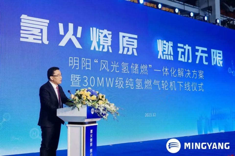 张传卫表示,明阳纯氢燃气轮机下线,将作为“风光氢储燃”一体化解决方案的关键一环,推动“电氢氨醇”等应用场景创新示范,为明阳集团依托氢能向下延伸绿氨、绿色甲醇产业链条,打造绿色“电氢氨醇”空气化工产业等赋能澎湃动力!