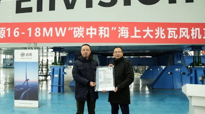 1月9日,远景16-18MW海上大兆瓦机组在射阳零碳产业园下线,TÜV南德在仪式现场向远景能源颁发碳排放预中和认证证书。首批碳中和风机即将竖立在中国沿海,实现绿色电力生产消费全流程零排放。近年来,“中国风电威胁论”在欧洲甚嚣尘上,贸易保护主义抬头、地缘政治博弈加剧等因素给全球新能源供应链带来不确定性。碳中和风机的下线,既是远景海上风电发展的里程碑,也是中国海上风电的一大步。