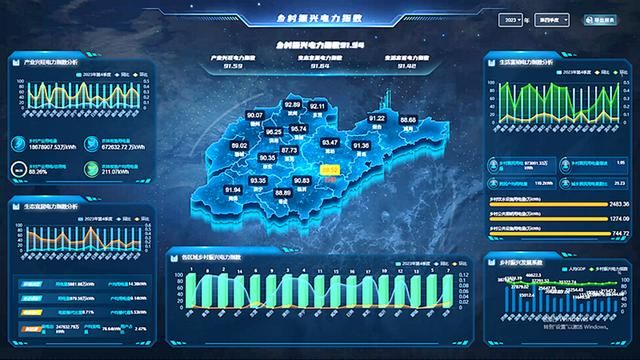 “电”眼看乡村振兴数字化平台是国网山东电力营销服务中心于2023年创新开发的,旨在通过深度挖掘电力大数据的价值,全方位、多维度评价乡村振兴发展实绩。平台从生活富裕、产业兴旺、生态宜居3个维度设置了34项指标,通过“富生指”“旺业指”“宜居指”全面反映乡村的生活富裕、产业兴旺、生态宜居水平,可按季度和年度对省、市、县、乡、村的乡村振兴工作成效进行综合评价、异常预警及可视化展示,发现先进,查找问题,实现了全省乡村振兴相关指标“一图全览”,以电力视角反映乡村振兴成效,助力乡村振兴成效评价分析工作化繁为简、快捷直观、科学准确。