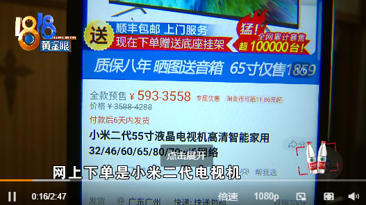 商业 网购小米二代电视 客服:跟小米压根儿没关系 2021-09-02 08:29:54 分享 来源:1818黄金眼嵊州的钱先生反映,自己之前买了一台小米电视,用着不错,这次又在网上买了一台小米二代电视,心想这二代肯定更先进。可收到货后,似乎不是那么回事。客服说,他们跟小米压根儿没关系。