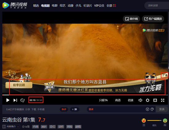 针对剧内弹窗广告无“关闭”按钮的情况,腾讯视频回应称,将在未来上线的版本中迭代优化。而《云南虫谷》嵌入在剧集中的广告(可以快进)是否也能够依法在版本中实现迭代优化?