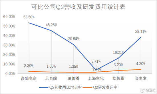 针对营销过重的负面形象,完美日记母公司逸仙电商明显在今年二季度加大了研发投入占比,通过建立生产研发基地、与更多产业链企业建立合作的方式,去改善产品竞争力。