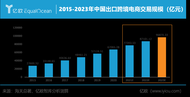 预计到2023年,中国跨境电商交易规模或将突破9万亿元 数据来源:亿欧