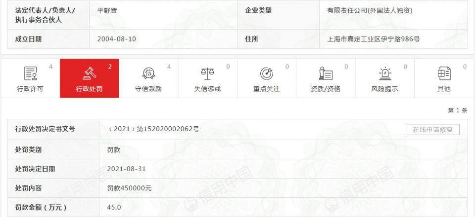 上海市浦东新区市场监督管理局依据《中华人民共和国反不正当竞争法》第二十条第一款,对其罚款45万元。