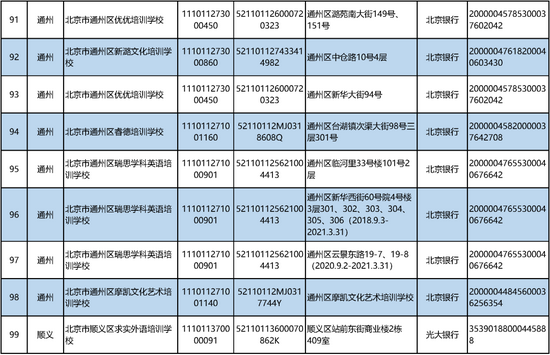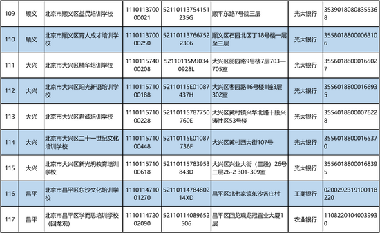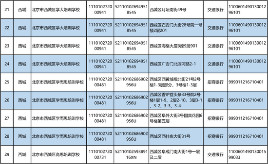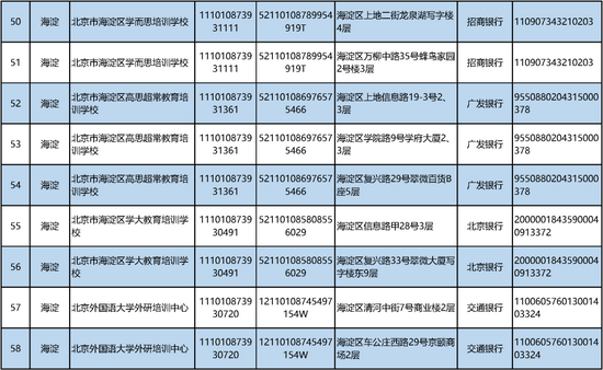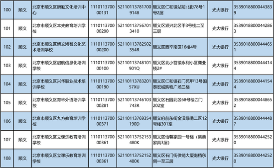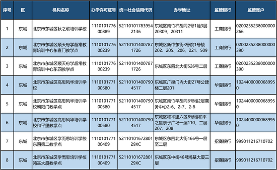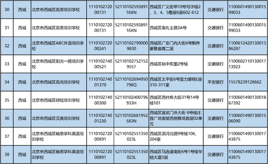 首份“白名单”共涉及152家机构,公示内容包括培训机构名称、办学许可证号、统一社会信用代码、办学地址、监管银行和监管账户等各类信息。