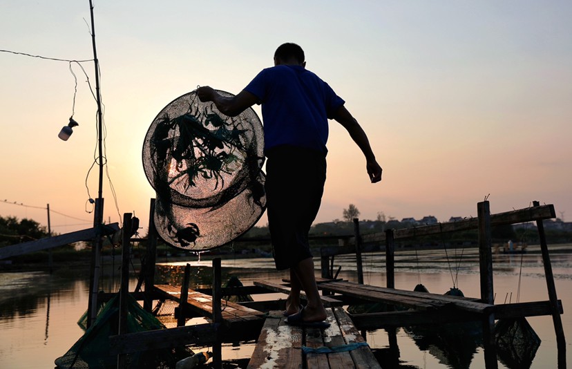 ▲江苏大闸蟹产区,忙碌的蟹农准备迎接销售旺季的到来。郝缦|摄
