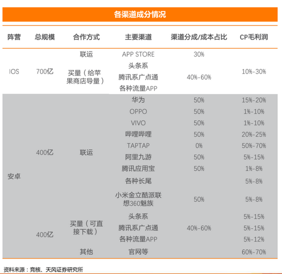 “一款游戏所获得收入主要被游戏研发商、发行商、以及分发渠道所瓜分。”一位游戏业内人士就表示,除了苹果手机,使用手机自带应用商店下载的游戏,都基本属于渠道服。比如华为、小米、OV应用商店,都是属于渠道服。