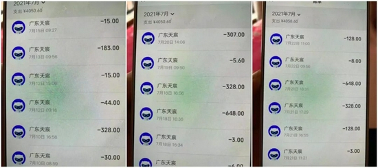 9月5日,一位用户就投诉称,孩子奶奶年迈没有及时看消费记录和看账单习惯,孩子在家偷玩手机游戏氪金,扣款方是广东天辰王牌竞速,“交易次数频繁,一分钟进行一次,半小时多次充值共计3100元。”