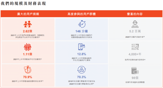 招股书显示,2021年上半年,喜马拉雅移动端用户共花费8478亿分钟收听内容,约占国内所有在线音频平台收听总时长的70%。拓开广度,喜马拉雅的用户粘性和使用深度也遥遥领先。