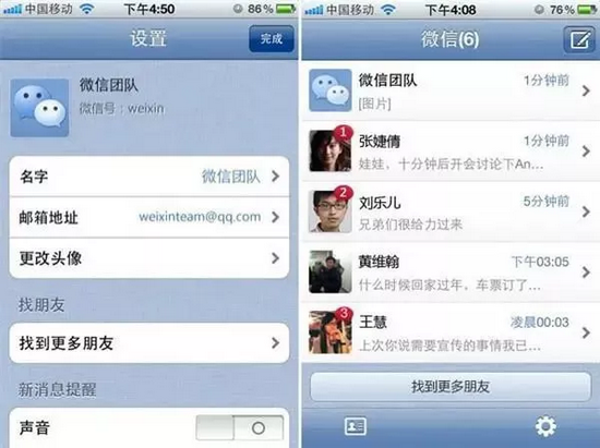 微信孕育而生。2010年10月,一款跨平台聊天应用Kik上线,15天内就吸引了超过100万用户,成为App store上的明星。远在广州的张小龙关注到了Kik,他给马化腾写了一封邮件,认为移动互联网会产生新的即时通讯工具,可能对QQ造成颠覆性的威胁,建议腾讯也做类似产品,马化腾很快回复了邮件表示认同。2011年1月21日,微信正式上线。