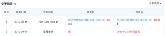 炣燃科技9月17日讯 近日,威马汽车公司的大股东出现了变更,天眼查显示,大股东由威马智慧出行科技(上海)有限公司变更为了苏州威马智慧出行科技有限公司。