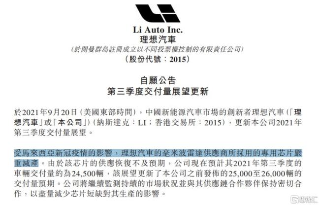 商业 下调第三季度交付量展望:理想汽车港股大跌 2021-09-22 08:25:58 分享 来源:新浪科技9月21日上午消息,理想汽车港股跌幅扩大至10%,报100港元每股,市值约2065.7亿港元。此前表示由于芯片供应恢复速度慢于预期,将第三季度的汽车交付量指引下调至约2.45万辆。