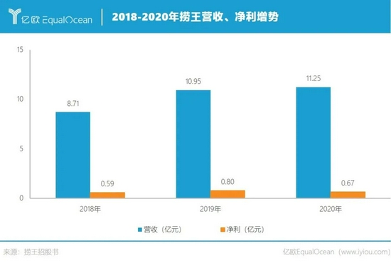 2018年至2021年上半年,捞王的营业收入分别为8.71亿元、10.95亿元、11.25亿元、6.47亿元;净利润分别为5905.5万元、7991.5万元、6744.1万元、2145万元。据此计算,捞王2019年和2020年的营收增速分别为25.72%、2.40%,净利增速分别为35.32%、-18.50%。