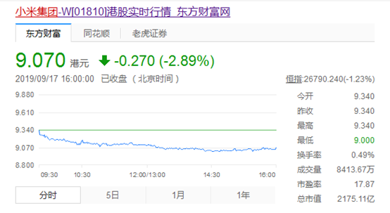 小米回购股票当天,其股价下跌2.8%至9.07港元。