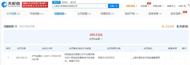 据行政处罚决定书显示,2021年5月14日至今,上海市普陀区市场监督管理局先后收到了投诉举报和其他市场监督管理部门线索移送,反映上海拉扎斯公司作为“饿了么”平台经营者,涉嫌对“渔小萌酸菜鱼(角美店)”、“查餐厅(上海店)”、“重庆小面”等多家平台内经营者的资质资格未尽到审核义务。