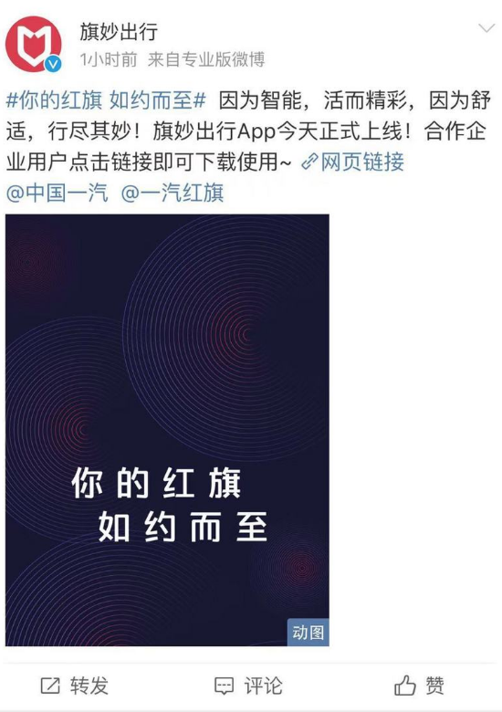 炣燃科技9月18日讯 9月17日,“旗妙出行”官微宣布APP正式上线,这意味着,用户再出门时,可以叫到一辆红旗牌的网约车。