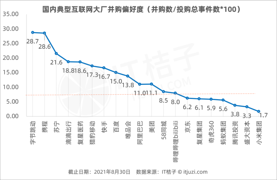 我们通过以并购总数占投资+收购总事件的比例来测算各家的并购偏好度。