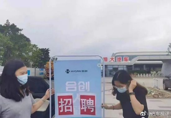 ▲合创汽车在恒大汽车总部门口竖起招聘海报(图自汽车视评)