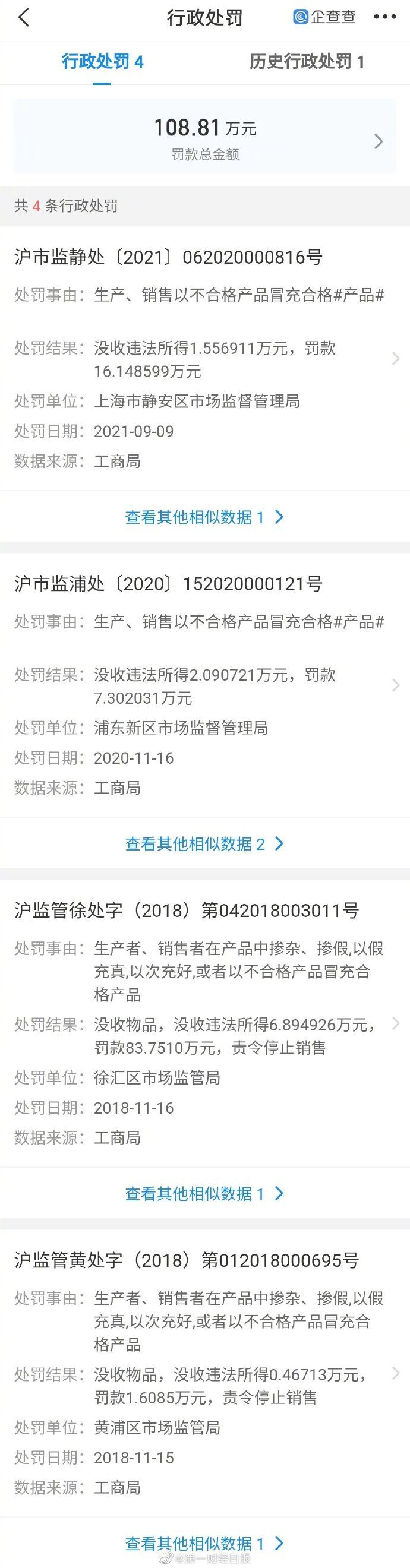 商业 maje销售不合格女鞋被罚16万:累计被罚108万 2021-09-27 10:14:36 分享 来源:第一财经企查查APP显示,近日,maje关联公司晟慕(上海)商贸有限公司新增行政处罚信息,处罚事由为以不合格女凉鞋冒充合格产品进行生产销售,处罚结果为没收违法所得1.56万元,罚款16.15万元。企查查信息显示,该公司共4次行政处罚记录,处罚事由均为以不合格产品冒充合格产品,累计处罚金额108.81万元。