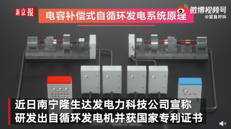 商业 南宁无限发电企业负责人道歉:仍坚称1度电可“变”10度电 2021-09-30 08:15:55 分享 来源:新浪财经近日,南宁隆生达发电力科技公司宣称,研发出自循环发电机并获国家专利证书,产品不用材料组装后就可以无限发电。9月29日,该公司负责人告诉@紧急呼叫,在专利、国家高科技企业等方面存在虚假宣传,但仍坚称自家产品能1度电发10度电。