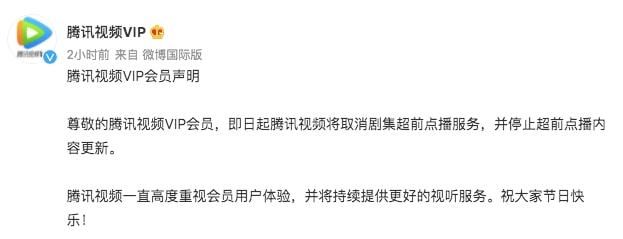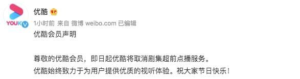 爱奇艺宣布取消后,优酷与腾讯同时宣布跟进,腾讯视频甚至还表示将停止超前点播内容更新。