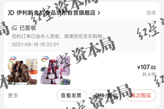 “起因是我家小朋友吃了别人的酸奶块,她觉得很好吃,我就上网搜了一下。因为之前没有买过这种产品,而伊利品牌知名度高,所以我选择了伊利的。”郑女士对红星资本局说。