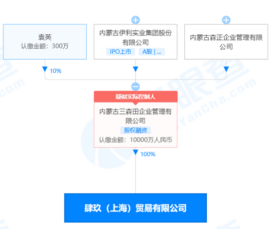同时,天眼查APP显示,上市公司伊利股份间接持股肆玖公司,但具体持股比例未显示。