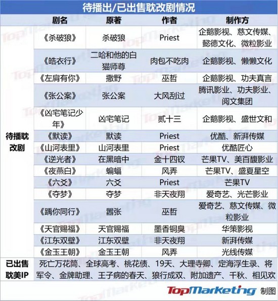 在过去两年里,几乎所有的头部耽美IP都被视频平台和影视公司开发,进入影视化流程。