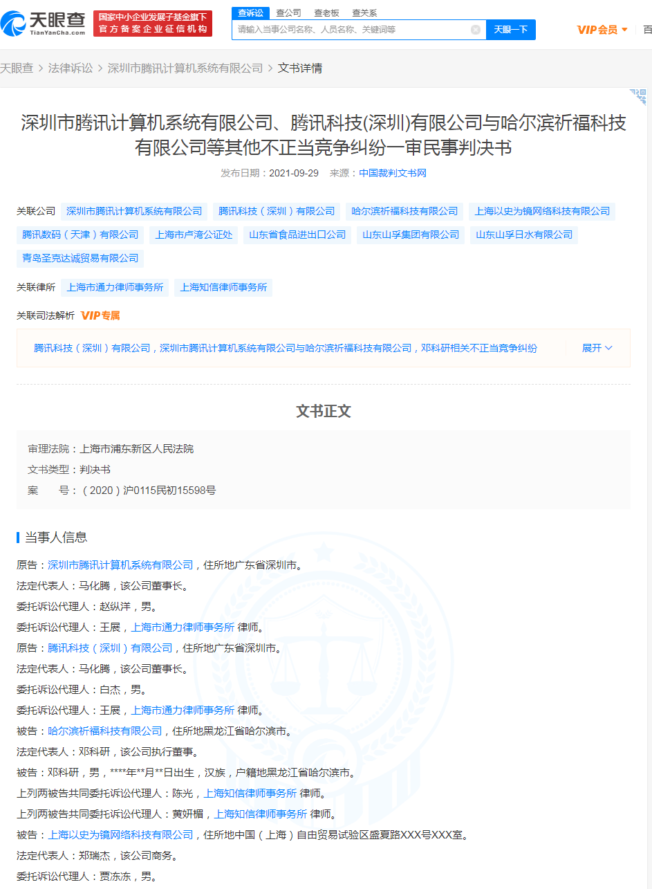 商业 腾讯起诉蚂蚁帮扶获赔300万元 2021-10-08 14:22:09 分享 来源:新浪财经因蚂蚁帮扶涉及组织诱导微信公众号进行广告刷量交易,以及微信账号买卖等行为,腾讯公司起诉其经营方,索赔500万元。10月8日,澎湃新闻记者从中国裁判文书网9月29日公开的一则民事判决书中获悉,日前,上海市浦东新区人民法院对这起不正当竞争纠纷案作出一审判决。
