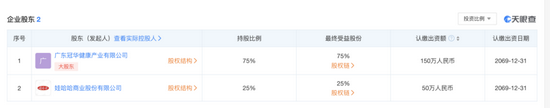 天眼查显示,娃哈哈奶茶所属公司为广州娃哈哈健康饮品有限公司。这家公司成立于2019年10月,注册资本为200万元。从持股比例上看,娃哈哈商业股份有限公司占比25%,广东冠华健康产业有限公司占比75%。