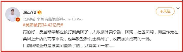 消息一经传出,网民一片叫好。一位网友说:反垄断早都应该打到美团了,大数据外卖杀熟,团购,社区团购,而且作为在美团上开店的商家来说,也早改整改佣金机制......