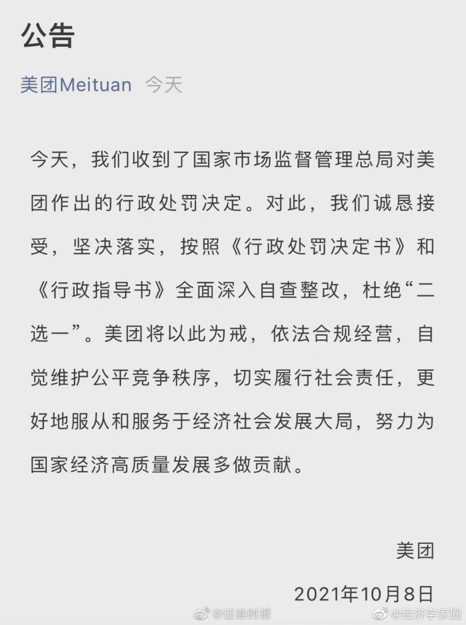 炣燃科技10月8日讯(宏斌)对美团的“罚单”终于来了。