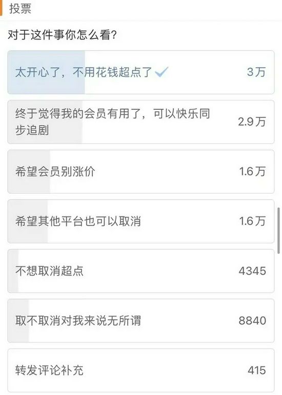(取消“超前点播”后的网友投票 图:新浪娱乐官微)