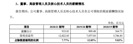 根据联想在上交所提交的招股书显示,在2020/2021财年,联想的公司董事、高级管理人员以及核心技术人员在公司领取的税前薪酬高达9.34亿元人民币,这些人员的人数不超过30个,这意味着他们的平均薪酬超过3000万元。