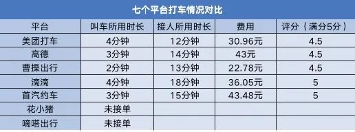 出行市场现在的情况到底如何?哪个平台,会是用户的首选?近期,燃财经做了一场试验,在下午17时30分左右,从同一地点(北京市朝阳区国贸商圈)出发,选择滴滴、美团、高德、首汽约车、曹操出行、花小猪、嘀嗒出行出行这7个打车软件,前往同一终点(东直门),获得不同平台的接单速度、到达速度、费用、乘车体验等多维度数据,并进行对比,从中可以得出部分结论。