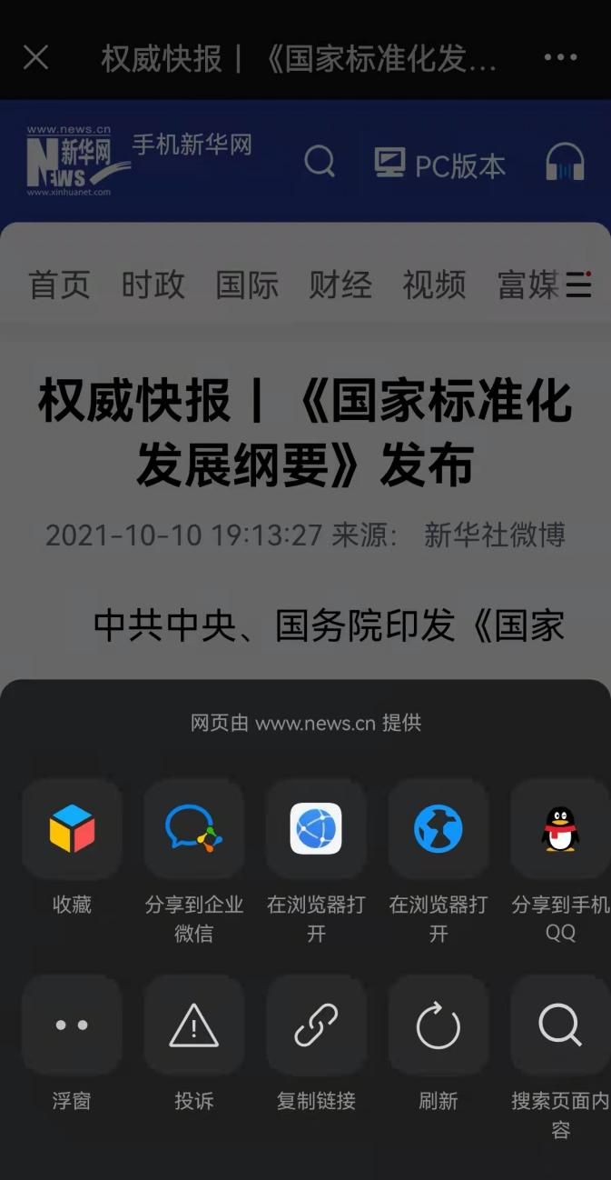 通过链接网址打开同一来自新华网(18.850,0.53,2.89%)的链接,下方却没有“转发给朋友”“分享到朋友圈”按键。