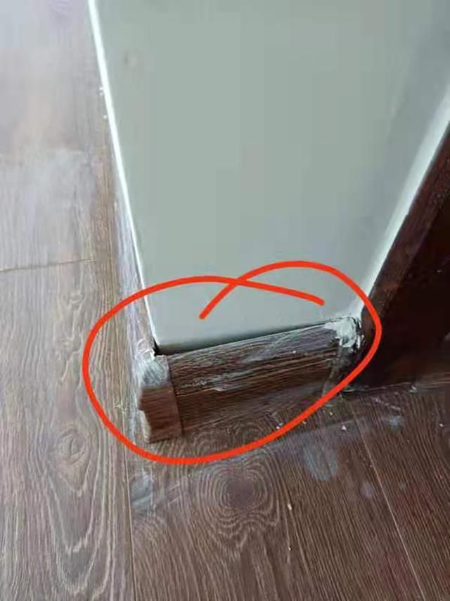 房屋内踢脚板做工粗糙。受访者供图